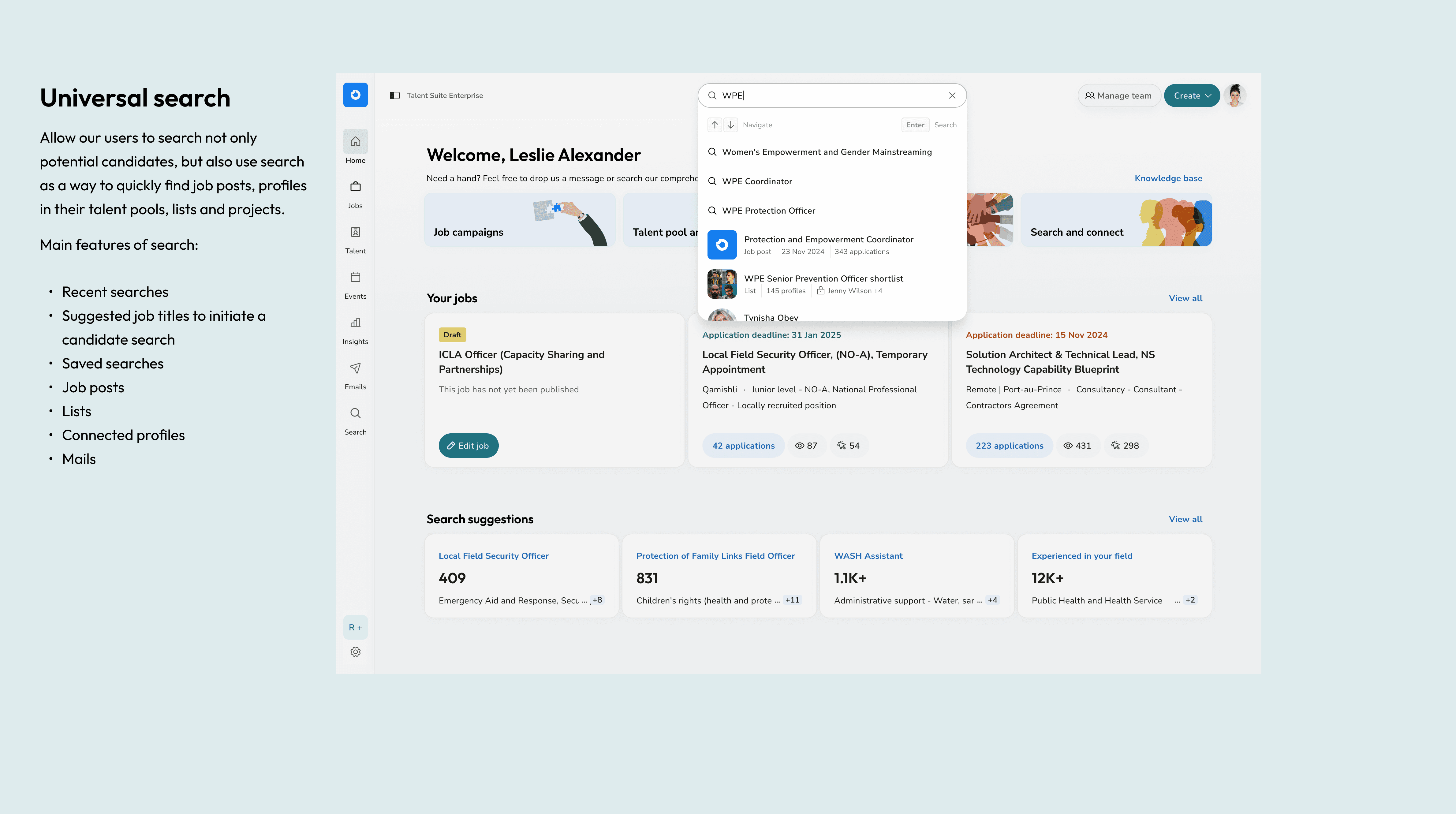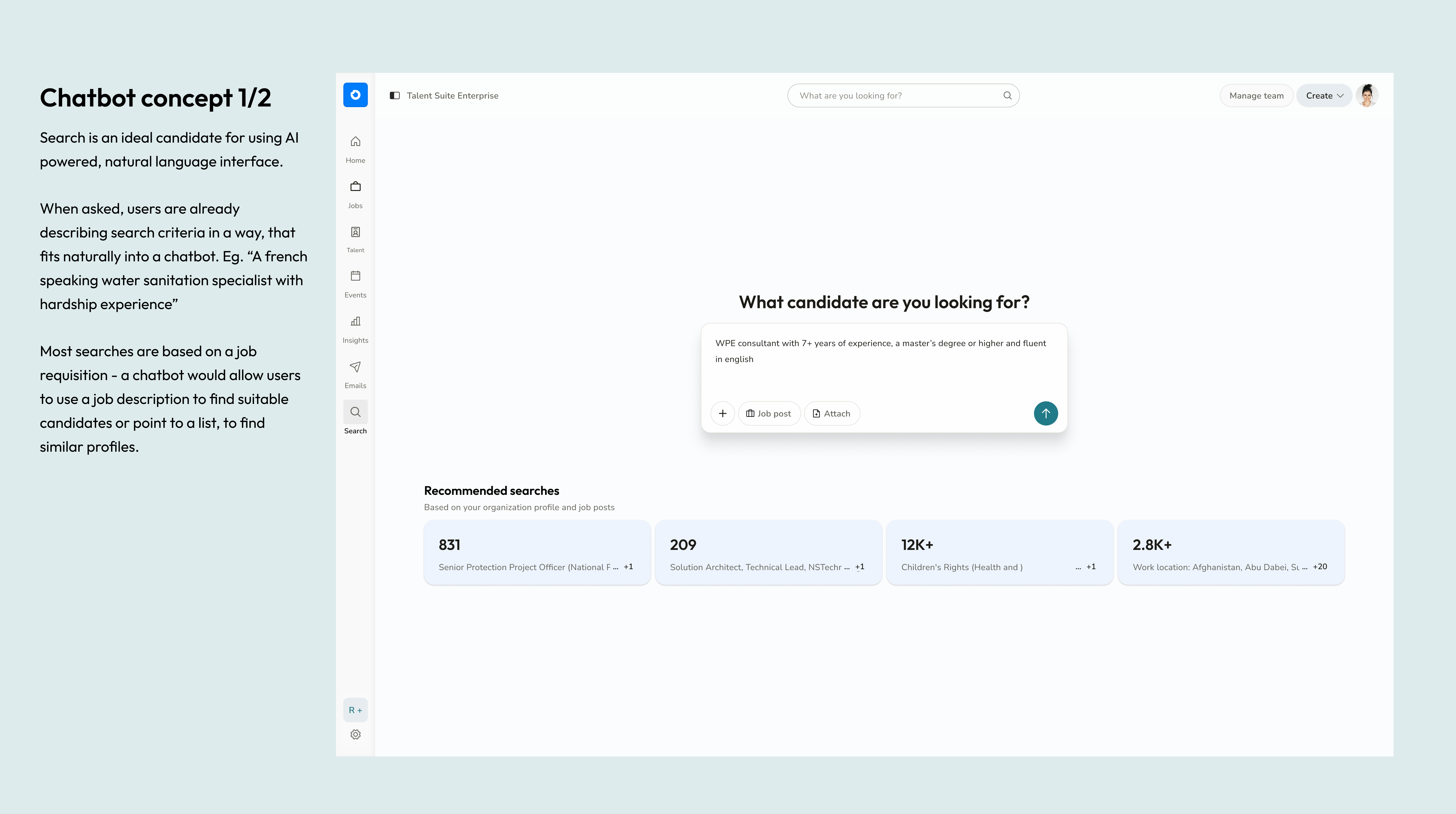 Recruiters received automatic candidate suggestions as they created job posts, surfacing relevant matches instantly and encouraging proactive outreach.