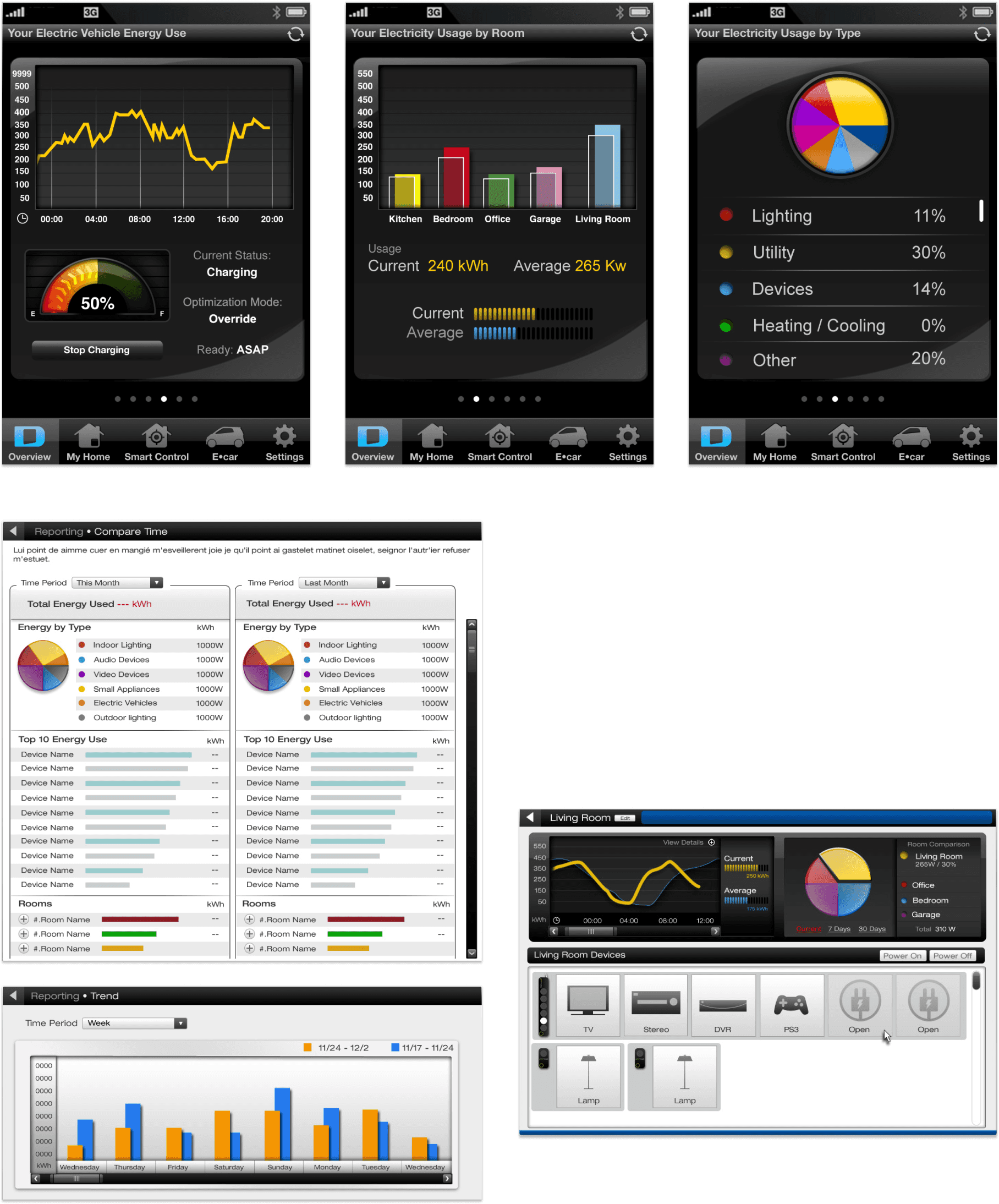 As the project moved into development, I remained responsible for user experience, user interface, and communication. The system comprised several physical devices for monitoring and controlling home appliances, electric cars, and heat pumps. These devices were as easy to set up as a standard electrical plug, and could be configured, controlled, and monitored from any computer, smartphone, or tablet.
